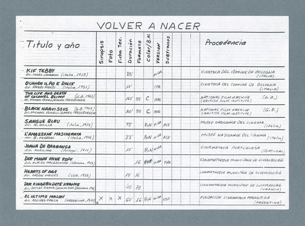 Documento interno de programación relativo a las retrospectivas «Volver a nacer» y «Harry d’Abbadie d’Arrast» (1990) Archivo Festival de San Sebastián [+]